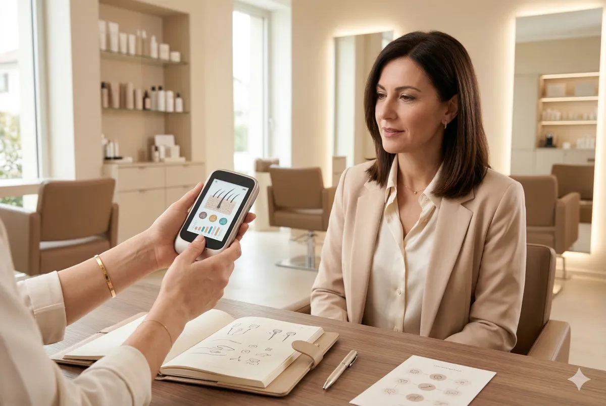 Ricevi una prima consulenza con studio e analisi della cute per capire cosa sta succedendo ai tuoi capelli e quale percorso può aiutarti a migliorare la salute della tua chioma.